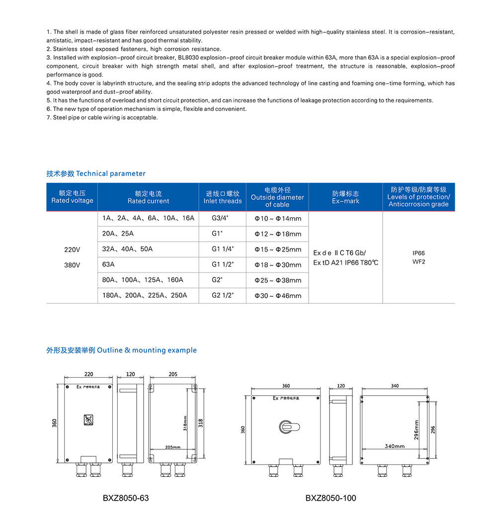 BXK8050系列防爆防腐控制箱(IIB、IC、DIP)
